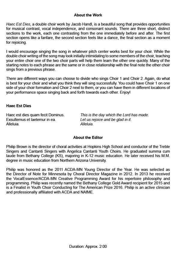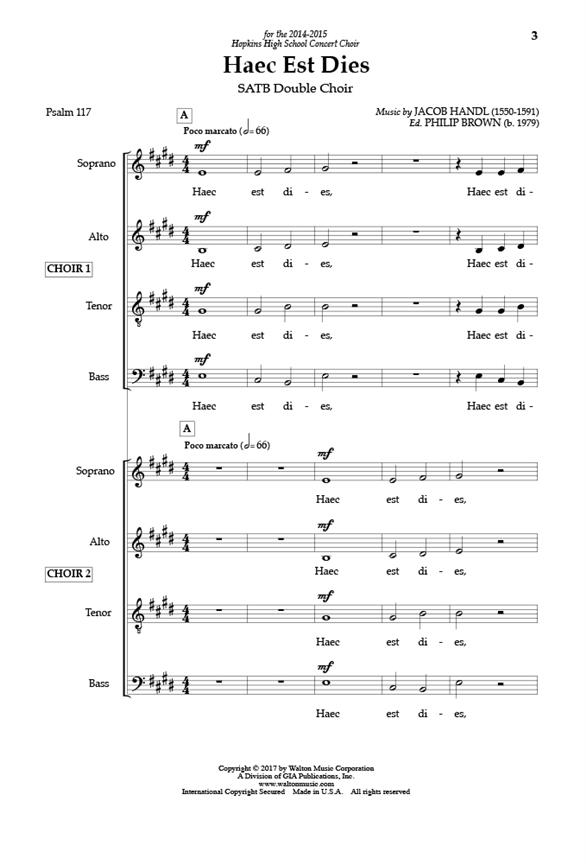 Jacob Gallus: Haec Est Dies (SSAATTTBB)