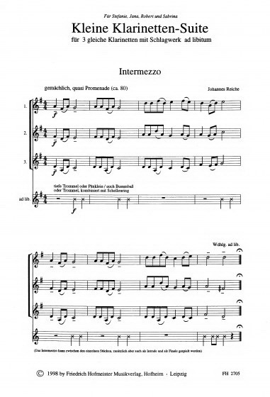 Johannes Reiche: Kleine Klarinetten-Suite