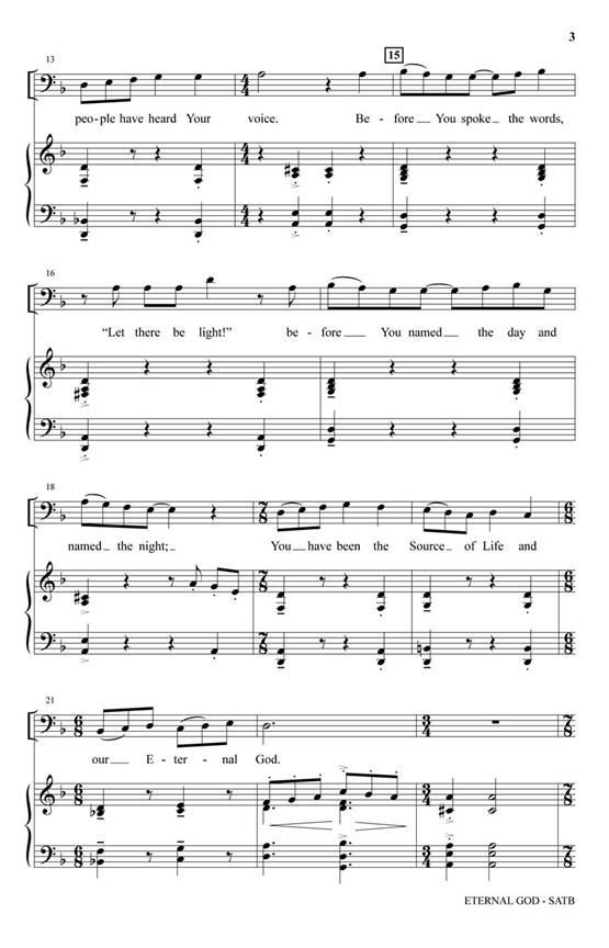 In this festival offering, exciting music meets powerful text. Mixed meter and a punctuated piano part bring a spirit of rhythmic drive to the anthem while copious unison singing adds to precision and articulation. The everlasting qualities of the Creator form the poetic center of the text and remind the worshipper to acknowledge His divine power and grace. A contrasting middle section offers a spirit of awe and wonder with exquisite choral color.