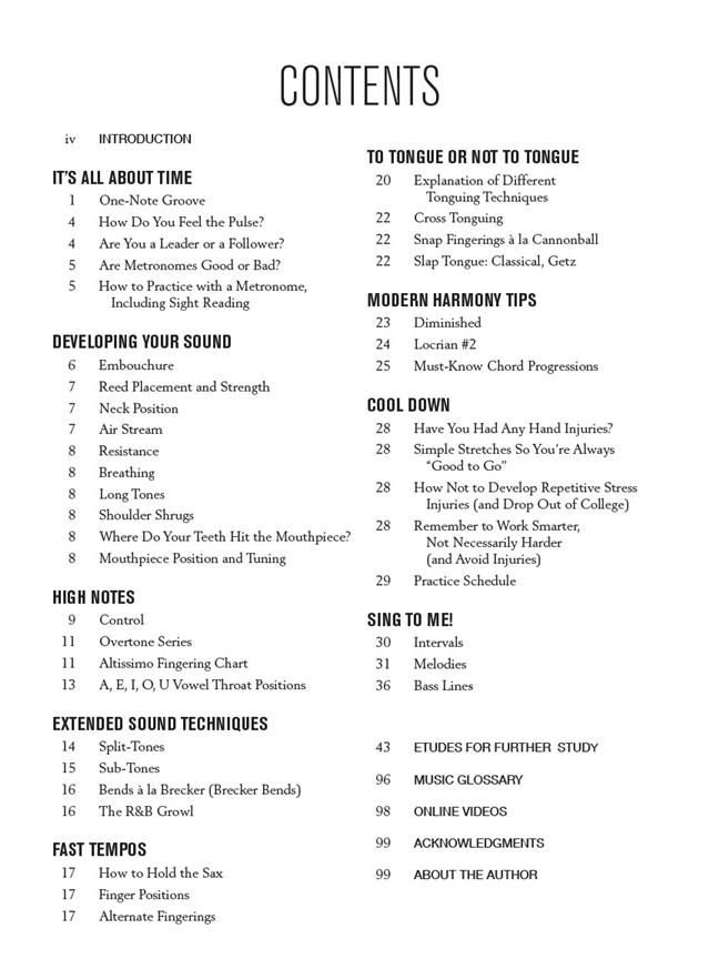 Many books present facts, but Modern Saxophone Techniques teaches the developing player how to learn. Listening, exploring, writing original music, and trial and error are some of the methods threaded throughout. The concepts presented will keep players learning, maturing, and mastering the saxophone in modern times, and for many years to come. On the online video, author and virtuoso saxophonist Frank Catalano offers quick tips on many of the topics covered in the book. In the Band allows saxophonists to play along on six tunes and studies. Topics include: developing good rhythm - air stream and embouchure - fingering charts - tonguing techniques - modern harmony tips - and more.