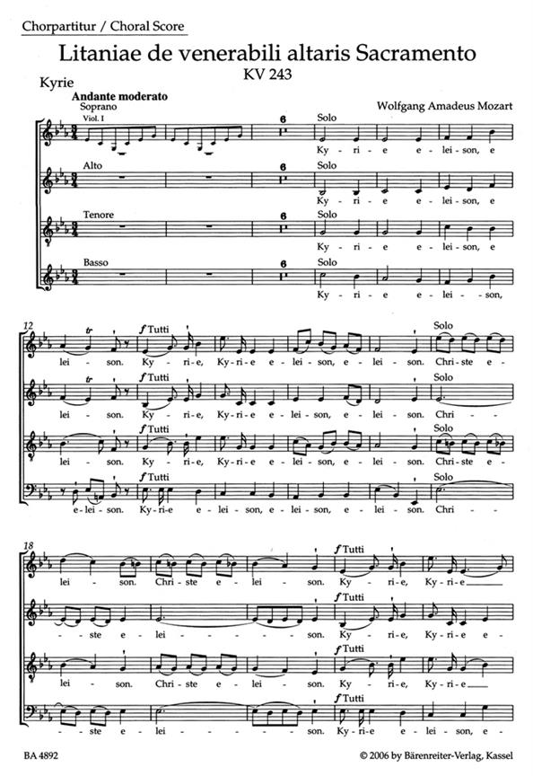 Mozart: Litaniae de venerabili altaris Sacramento in E-flat major K. 243