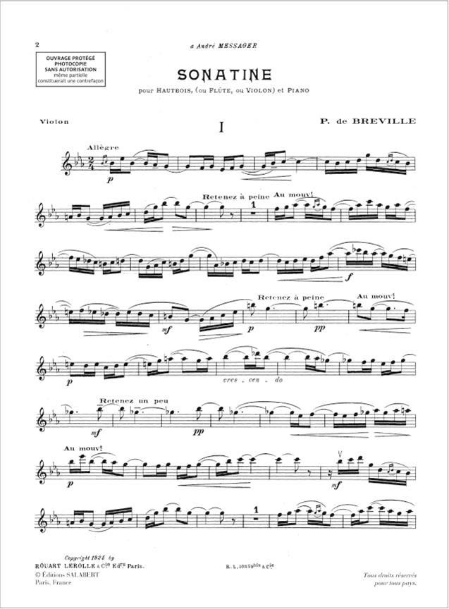 Pierre-Onfroy de Breville: Sonatine Pour Hautbois Ou Flute Ou Violon Et Piano