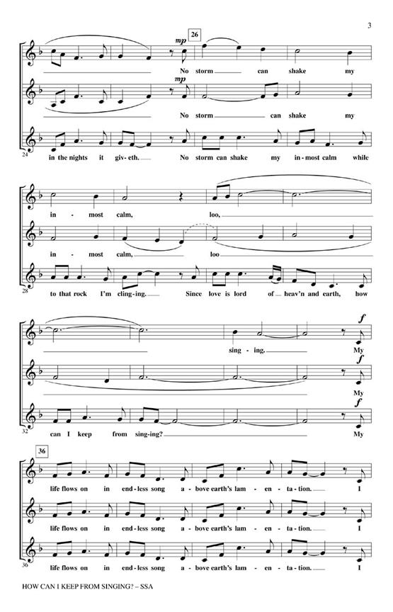 Emily Crocker's arrangement of How Can I Keep From Singing? by Rev. Robert Lowry is a moving and inspiring song of celebration for, unaccompanied SSA chorus.Inhoudsopgave