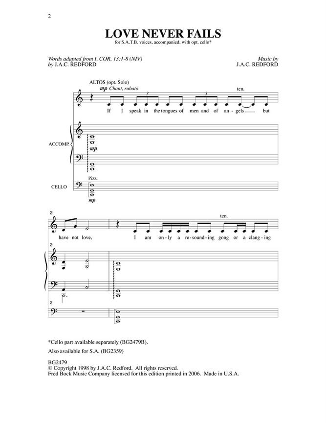 Love Never Fails With Cello Part