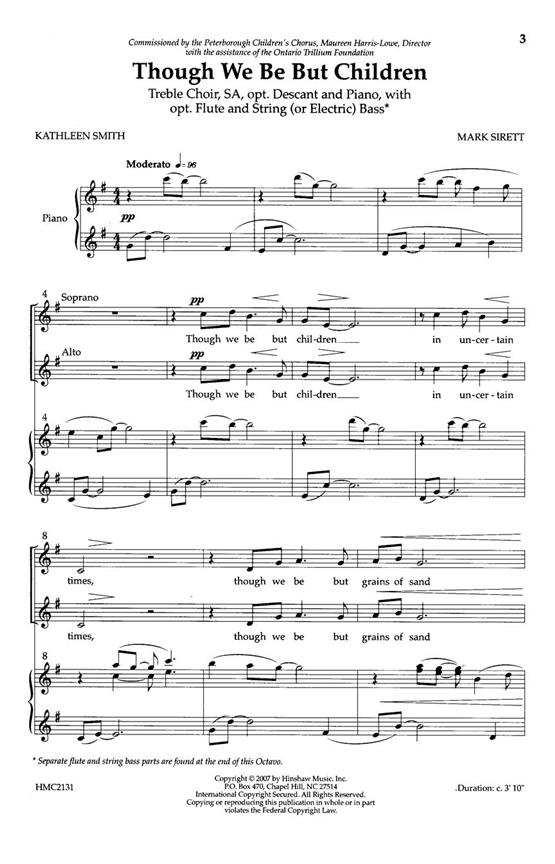 - Instrument(en): SA Children's Choir, Opt. descant, Piano, Fluite, Bass