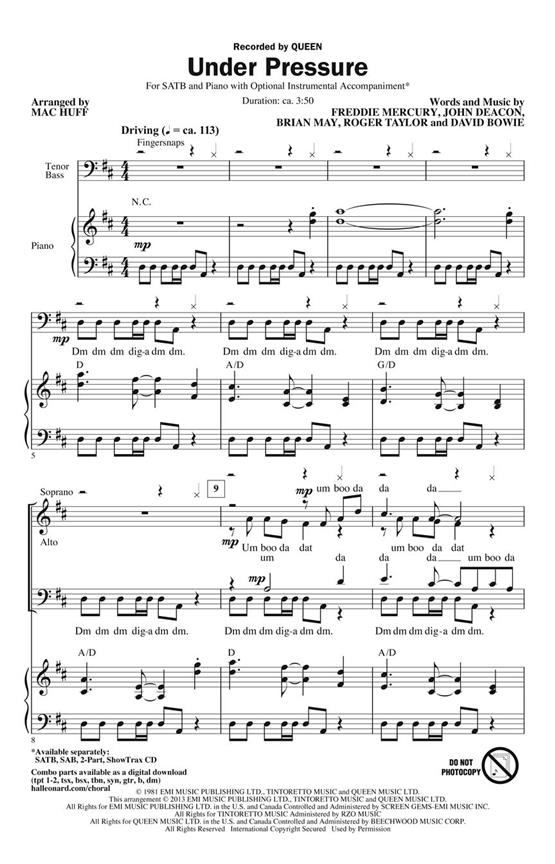Under Pressure(Words and Music by F. Mercury, J. Deacon, B. May, R. Taylor and D. Bowie)