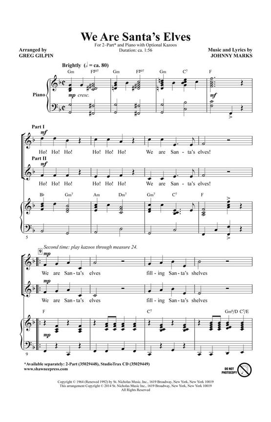 Made popular on the holiday television special Rudolph the Red-Nosed Reindeer, this Johnny Marks song is a bright new work for young voices and includes optional kazoos for added fun. Simple, repetitious part-writing makes this quick to learn and easy to add staging, movement, and costumes.